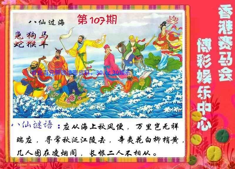 107期港彩八仙过海开發00 应从海上秋风便,万里岂无祥瑞应,寻常秋泛江陵去,辛夷花白柳梢黄,几人图在凌烟阁,长恨二人不相从。 解释:应从海上秋风便,便解牛肖,万里岂无祥瑞应,祥瑞应解龙肖,寻常秋泛江陵去,江陵解猴肖,辛夷花白柳梢黄,花白解蛇肖,几人图在凌烟阁,凌烟阁解羊肖,长恨二人不相从,不相从解鼠肖。 综合特肖:牛龙猴蛇羊鼠 综合四肖:牛龙猴蛇